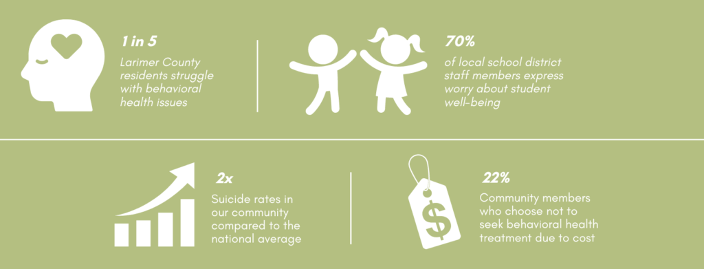 presenting with suicidal ideations as early as elementary school. Additionally, the older adult demographic faces escalating rates of loneliness and caregiver strain, all while northern Colorado grapples with a shortage of mental healthcare providers.
