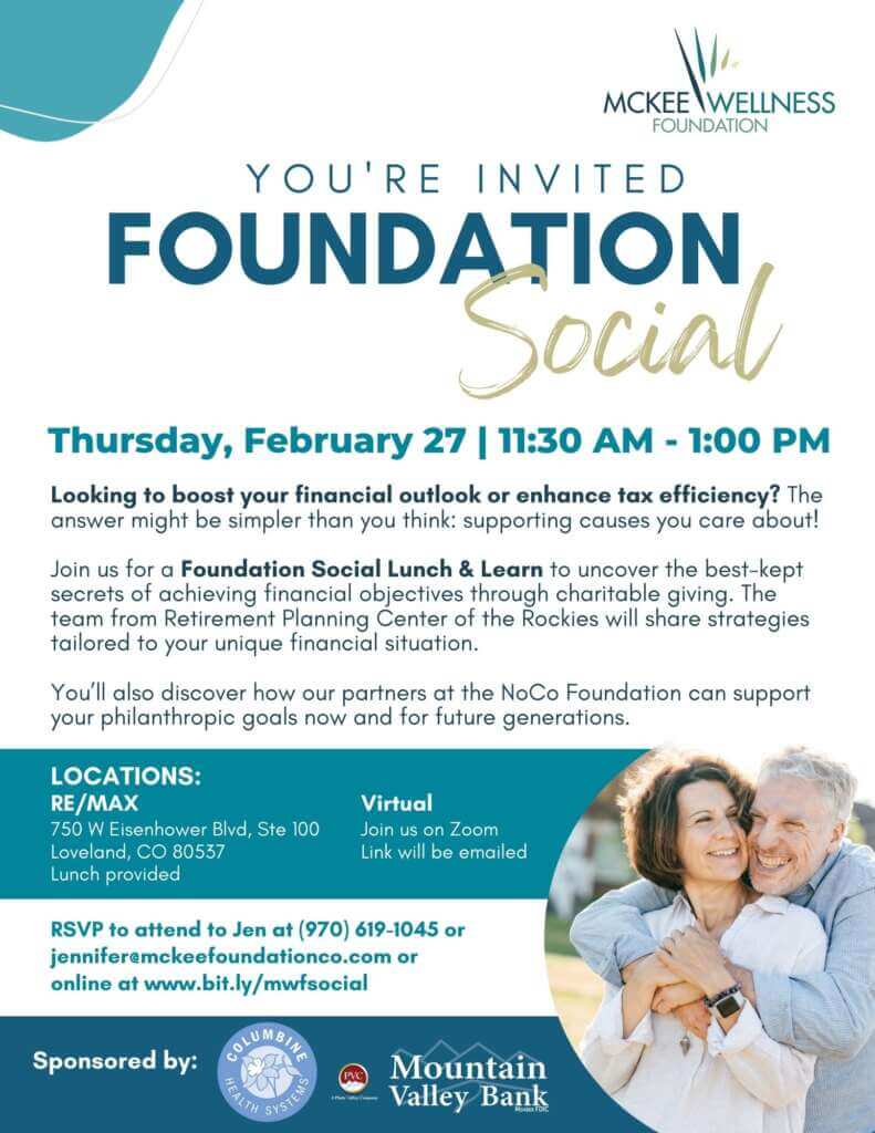 Supporting the causes you care about can also support your financial future. Learn how to align charitable giving with financial goals at the upcoming McKee Wellness Foundation Social on Thursday, February 27, from 11:30 AM – 1:00 PM.